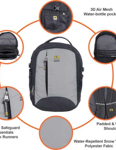 Fb Fashion Bags SB-616 Black Grey for School/College/Office/Travel Backpack