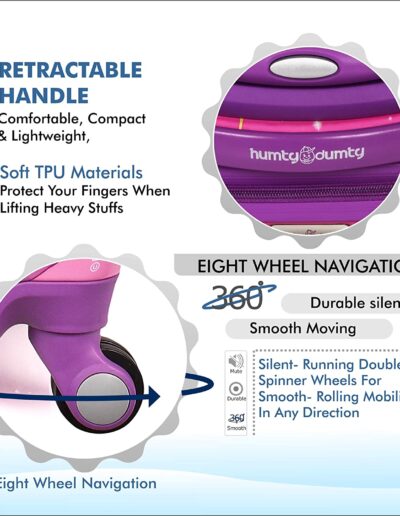 ROTATABLE WHEEL & CONVENIENT: The 8 wheels can turn 360 degrees and adjustable steel trolley with ABS Grip for easy handling, your children can easily push or pull the luggage, you don’t need to worry about your kids’ when they go camping.