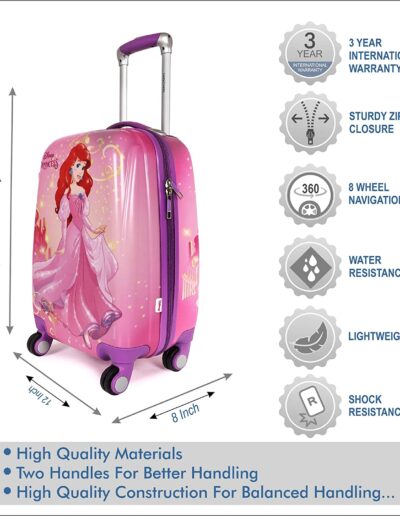 Humty Dumty Disney Belle Pink Polycarbonate 22 Inch / 55.8 cm Kids Hard Luggage Trolley Bag | Travel Bag