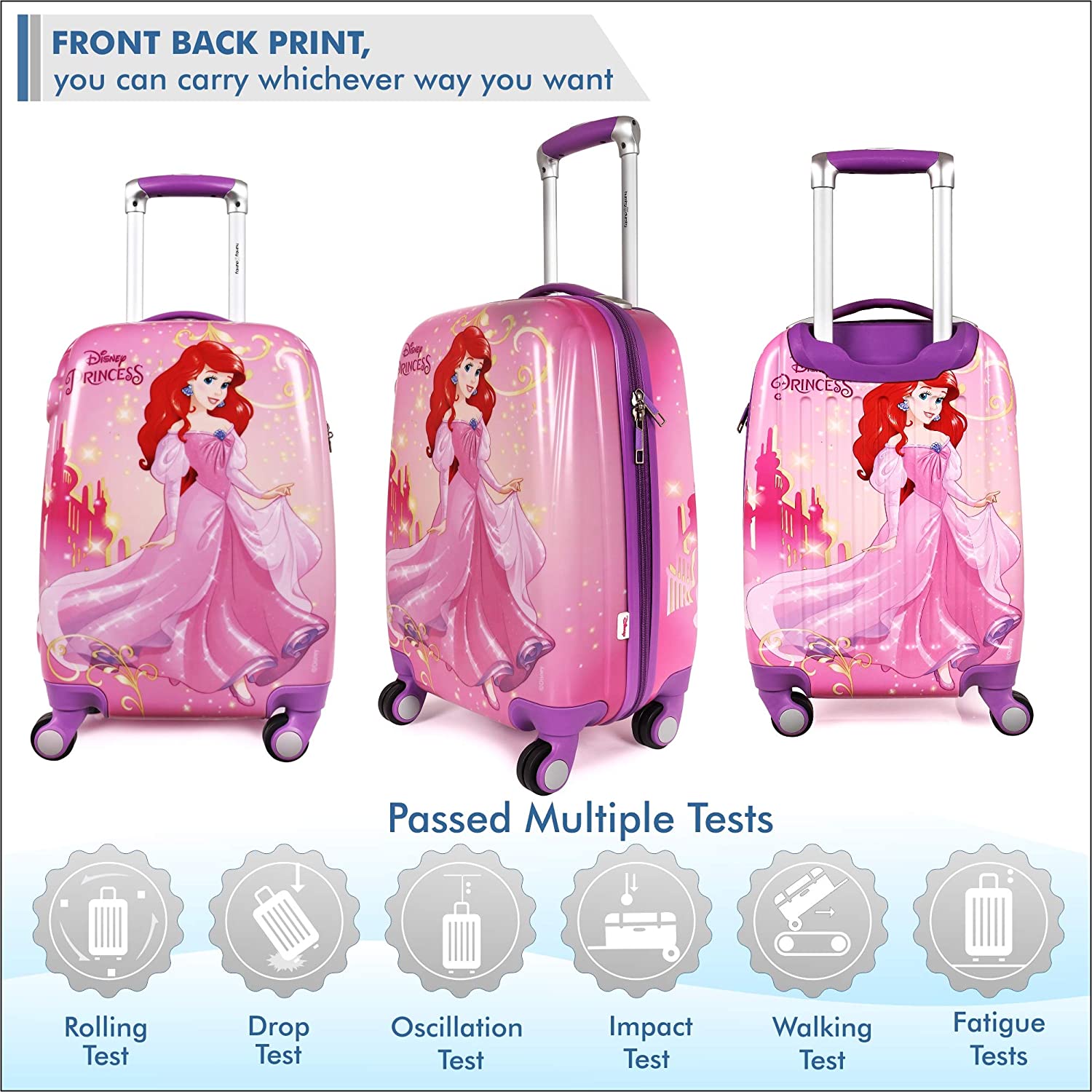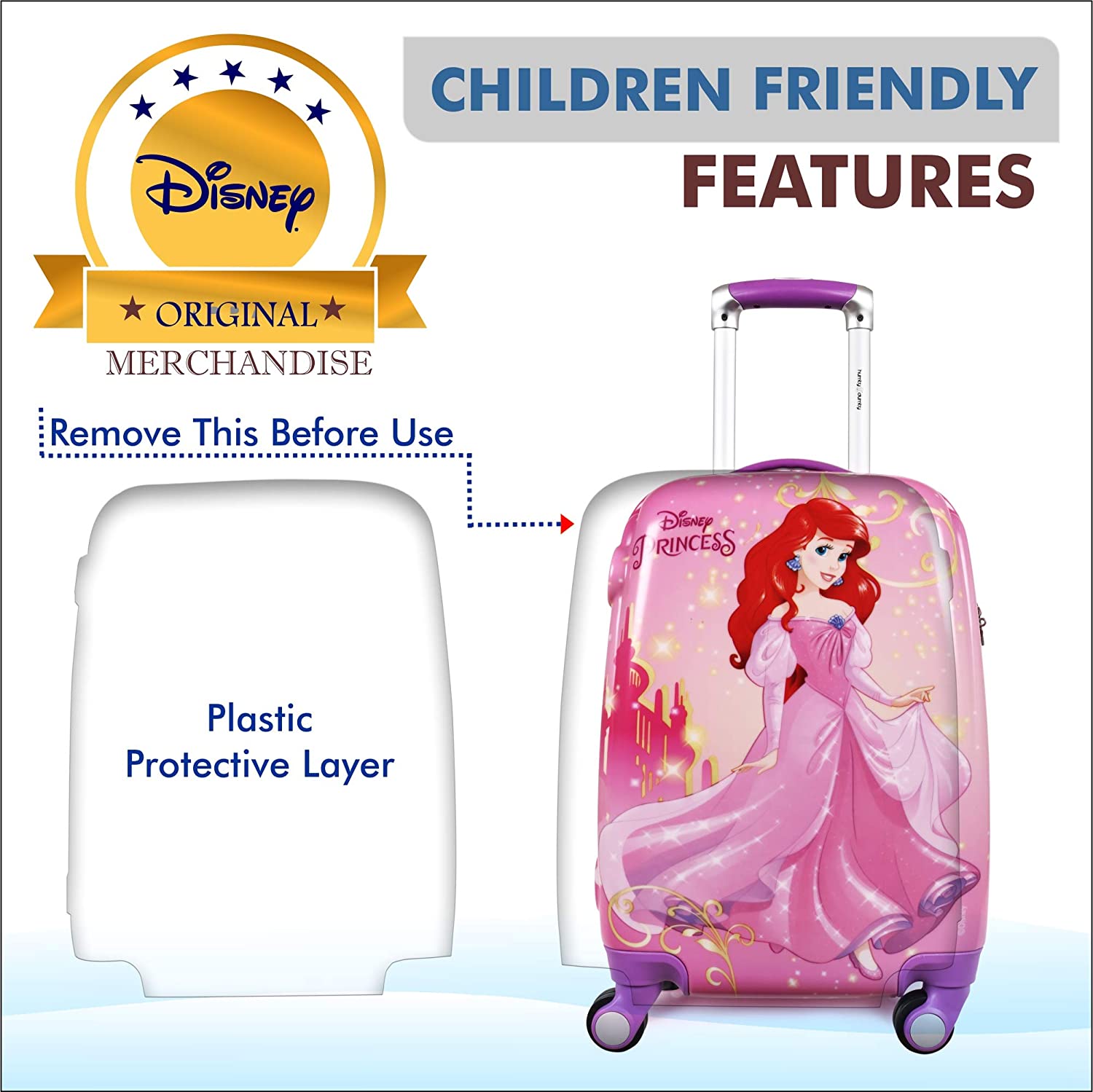DISNEY LICENSE: Officially Licenses Cartoon Characters: officially licensed kids luggage. They feature graphics and durability in used materials that make it the perfect gift to kids.