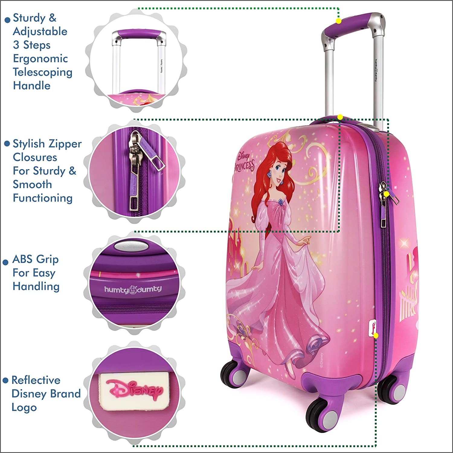 Humty Dumty Disney Belle Pink Polycarbonate 22 Inch / 55.8 cm Kids Hard Luggage Trolley Bag | Travel Bag