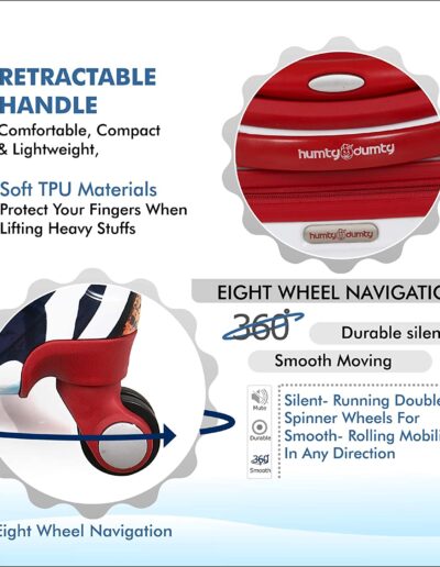 ROTATABLE WHEEL & CONVENIENT: The 8 wheels can turn 360 degrees and adjustable steel trolley with ABS Grip for easy handling, your children can easily push or pull the luggage, you don’t need to worry about your kids’ when they go camping.